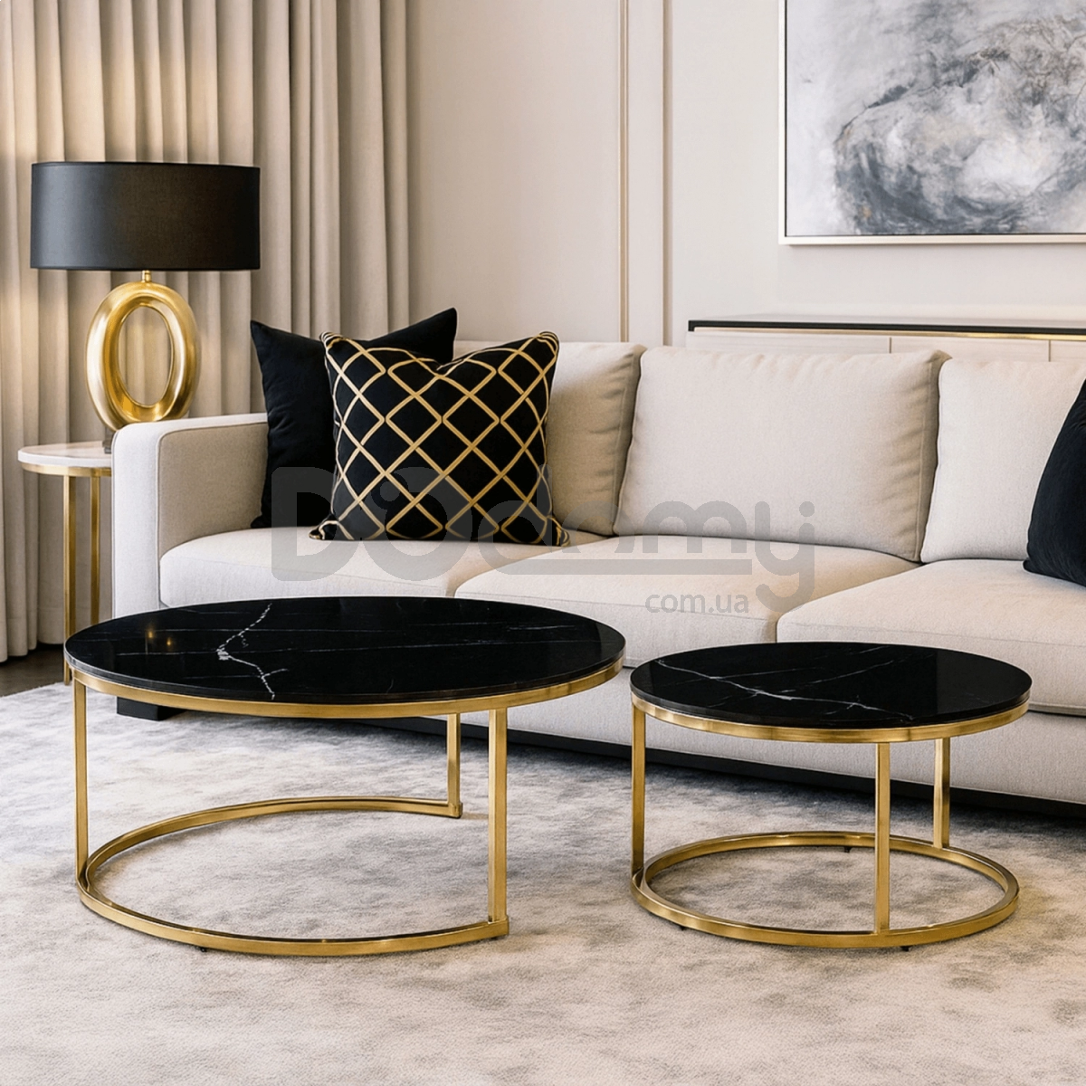 Комплект журнальних столиків MEBEL ELITE MILANO Чорний мармур / Золотий, фото 1