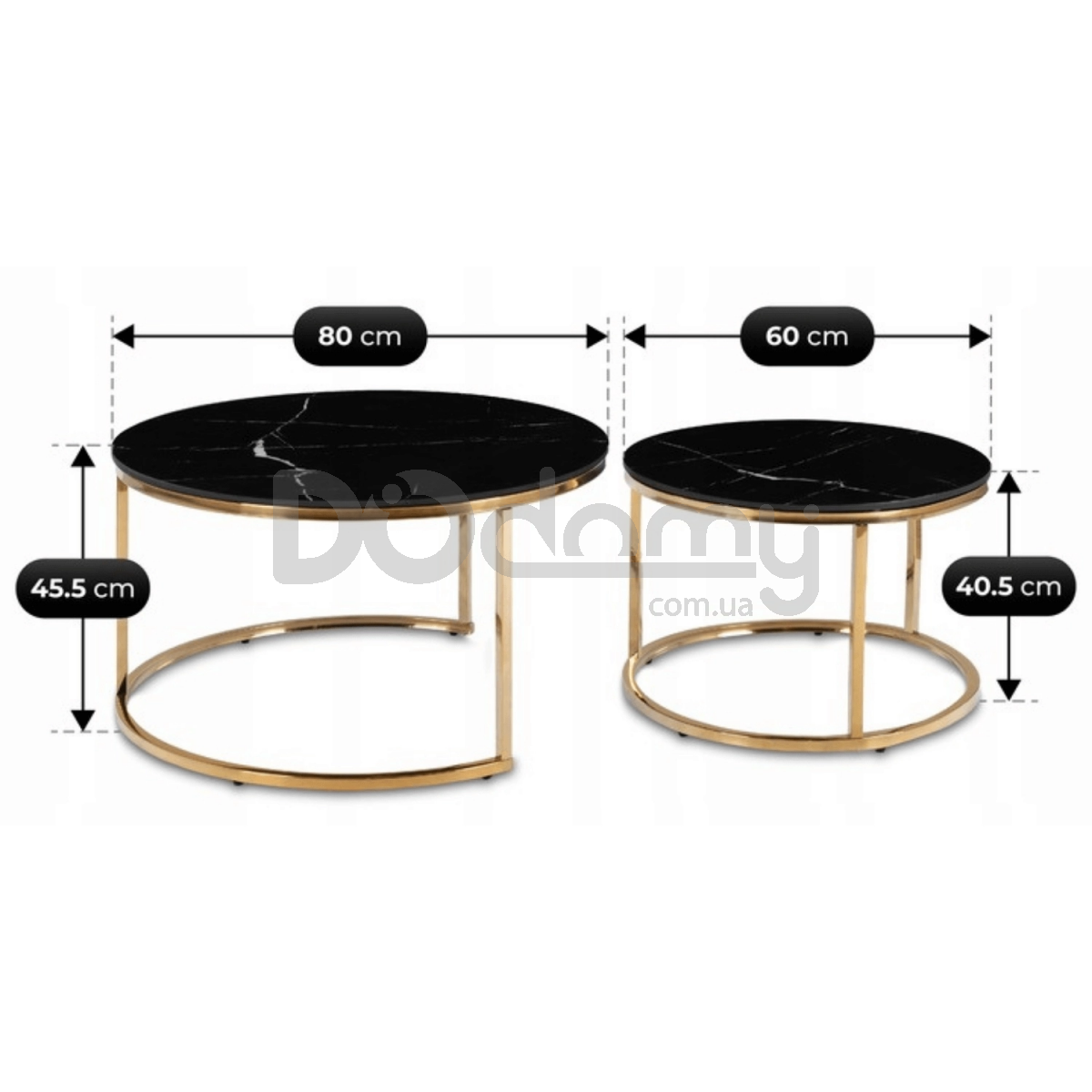 Модель: Комплект журнальних столиків MEBEL ELITE MILANO Чорний мармур / Золотий