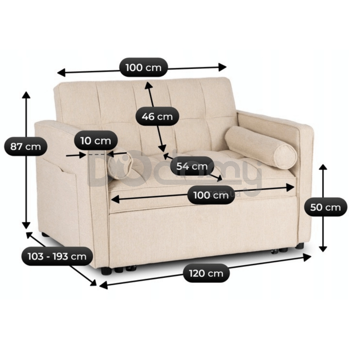 Довжина крісла - 103-193 см